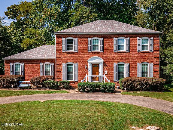 Oldham County living at its best! Here's the home you've been waiting for. Lovingly cared-for 2-story home in Countryside. There is plenty of room for parking on the circular drive. Once inside, discover an open floor plan ideal for entertaining guests. Gleaming hardwood floors flow throughout most of the home. To your right is the open and light-filled living room that flows directly into the family room area that features a floor-to-ceiling brick fireplace as the centerpiece. From here there is also access to the backyard. A powder room is situated conveniently off this room as well. The updated kitchen features an eating island, dual-level granite countertops, pantry, handsome tile backsplash, and a full complement of appliances