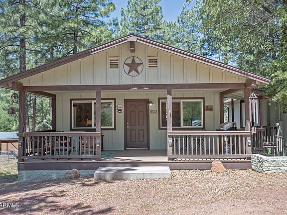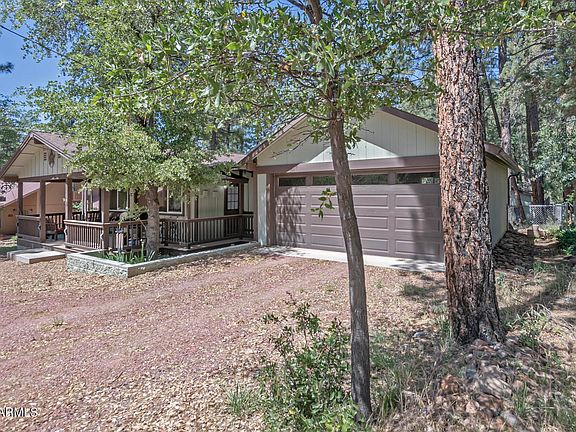 Welcome to your own slice of mountain paradise! This move-in ready cabin is nestled among the majestic tall ponderosa pines, offering a serene and picturesque setting. Immerse yourself in the beauty of nature with stunning views of Strawberry Mountain. Step inside and be captivated by the spacious interior. With two bedrooms and two bathrooms, this cabin provides the perfect retreat for relaxation and comfort. The open floor plan seamlessly blends the living, dining, and kitchen areas, creating an inviting space for entertaining friends and family. Experience the true essence of outdoor living with both covered front and rear decks. Bask in the warm sunlight as you sip your morning coffee on the front deck, or host unforgettable barbecues on the rear deck while enjoying the .. CLICK MORE cool mountain breeze. The fenced backyard offers a very large area for children and pets to play freely. Plus, there is a side gate for your RV, toys, etc. But that's not all! This cabin also boasts a walkout finished basement area, providing additional flexible space for a variety of needs, including room for additional guests. As an additional bonus, there is an oversized 2 car garage that will accommodate vehicles and toys. Imagine spending your days exploring the nearby hiking trails, or simply relishing the tranquility that surrounds you. Don't miss out on this incredible opportunity to own a cabin that embraces the beauty of its surroundings and offers the perfect blend of comfort and adventure. Come and make this mountain retreat your own today! Furniture is negotiable outside of escrow. Per the previous owner in 2014 COMPLETE renovations and room additions; 2011 New Roof; 2009 New Electrical and Plumbing, septic and leach pit; 2008 kitchen; 2011 HVAC/heat pump; 2015 Wood burning stove; 2015 Front Porch and deck with Trex, rain gutters, new garage door and more.