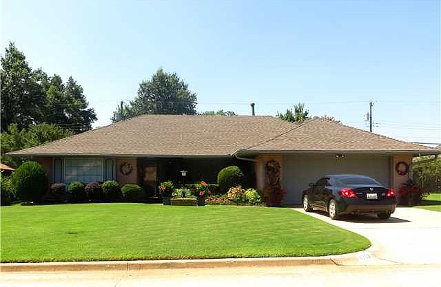 Wonderful curb appeal,lush landscaping,manicured lawn,brick lined flowerbeds,covered front porch. Big dining room w/curved bay window,cozy & comfy living room has brick FP w/gaslogs,builtin oak bookcase,ceiling fan, neutral walls & earthtone plush carpet. 3 good sized bedrooms have walkin closets,ceiling fans & lots of windows for natural light. Kitchen has beautiful rick oak cabinets,smoothtop cooking, black built in microwave, built in black oven & recent updated neutral ceramic tile floor. Indoor utility room,STORM CELLAR in garage, extra large covered back patio which has a brick half wall enclosure,gorgeous landscaped backyard, utilty shed, privacy wood fence, roof replaced 9/13 (1 layer). This is the home to see - meticulously maintained and well loved home near sought after Coronado elementary school. Close to shopping, main highways and centrally located in north Oklahoma City. Make you appointment today!