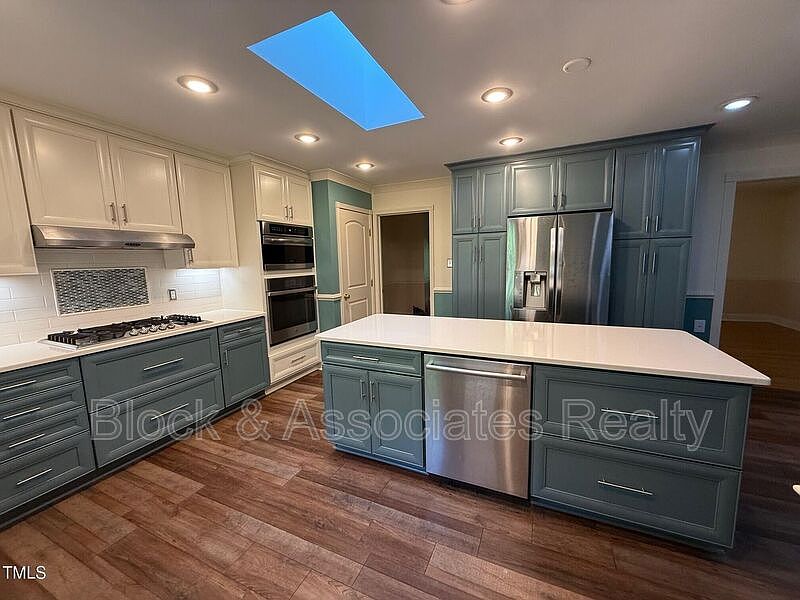 Available now! This beautifully updated split level home in premiere North Raleigh location is oozing w/ extras everywhere! Lovely wood floors throughout most of the home, Upper & lower family rooms, fully-equipped spectacular entertainer's kitchen overlooking large back yard w/ garden areas, deck, patio. 3 bedrooms up and lower level has huge family room with fireplace and 4th bedroom guest suite w/ private entrance - would make a very nice private office as another option. 1-car garage +large outbuilding for storage or workshop. Covered area extends from storage - great for boat storage. Close to shopping, restaurants, parks &recreation areas. Pet may be considered. Must see!