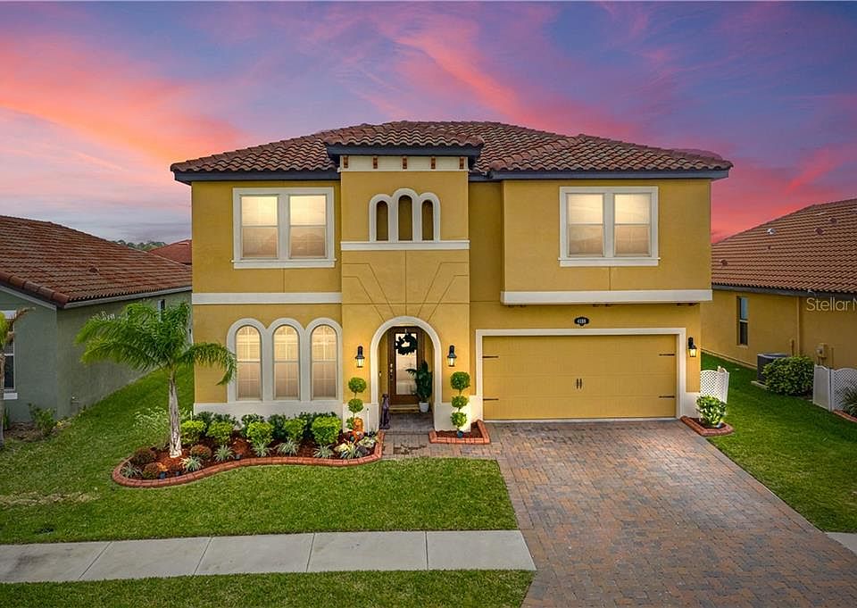 Incredible BREATHTAKING home featuring: 4 Bedrooms, 3 ½ Baths, home OFFICE with French doors, BONUS media room and a 2 Car garage. Bedroom #2's enclosure allows for conversion into a second master or mother in-law area! All ideally located in the HIGHLY SOUGHT AFTER, resort style, gated community of Terralargo. This 2018 MOVE-IN ready home is better than new with all its UPGRADES, FEATURES & APPEAL starting with a paver driveway, mature landscaping & Tuscan tile roof. Stepping inside this stunning home will take your breath away, as you notice all the NATURAL light! Gourmet kitchen features: a wall oven and microwave, GRANITE counter tops, kitchen island, hood vent, cooktop, double door closet pantry, BUILT-IN butler's pantry, 2 additional pendant lighting & bar seating. KITCHENS OPEN CONCEPT allows for casual seating with-in reach of the formal dining area. Living room overlooks SCREEN-IN LANAI providing you with natural light, sliding glass doors extends your living space outdoors. Downstairs Master Bedroom has a trey ceiling & EN SUITE bathroom with double doors, his & her sinks, Garden tub, ENORMOUS walk-in closet, and private toilet stall. In addition, a spacious laundry room is located downstairs. Walking upstairs, you will see the amazing BONUS MEDIA ROOM, which includes screen and projector. Large track door leads to 2nd potential Master bed/bath and or Mother in-Law area. Long hallway separates bedroom 3 & 4. They share a Jack & Jill Bathroom with dual sinks. Both are sizeable rooms, and all bedrooms have WALK-IN CLOSETS! Ample storage located in hallway & through-out home as well. The community of Terralargo is conveniently located just minutes away from I-4, retail & restaurants. Did you know Terralargo offers resort style amenities which include a Clubhouse, fitness center, covered play area, zero-entry pool, swimming lanes, spa/hot tub, gazebo, and tennis/basketball/pickleball courts. Don't miss out on this BEAUTIFUL move-in ready home! Call & schedule your private experiance today!