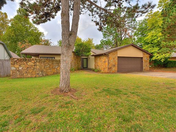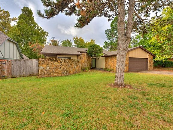 *Highest and best offers due Sunday, October 29th at 5pm.* Contemporary-style stone and wood sided home with plenty of character in Norman's Quail Brook neighborhood! This west-Norman home built in 1981 features 3 beds, 2 baths, and 2160 square feet! The kitchen, breakfast nook, and dining rooms feature wood flooring, and lots of natural light from large windows in the NE corner and a sliding door that leads to a private walled-in patio in the front of the home. The dining room overlooks the backyard with a large south-facing benched window. The roomy living room has wood-like tile flooring, a gas fireplace, a built-in desk and book shelf, an angled tall ceiling with canned lighting, and a sliding glass door along with a wall of windows that lead to the back patio and backyard. In the spacious primary bedroom you'll find a built-in desk and shelving, canned lighting, and a tall, angled ceiling. The primary bathroom has ample room, a jetted tub, double vanity sinks, a big skylight, and a large walk-in shower. The hall bath also has a skylight and a tub/shower combo. The two secondary bedrooms both have carpet and nice sized closets. The laundry room has built-in cabinets and counter space with room to work. And the home has an attached two-car garage. New roof and a new sewer line both installed in 2022. Truman Elementary, Truman Primary Schools and Lions Memorial Park are nearby. Easy access to I-35, Sooner Mall, Brookhaven Village and University North Park shopping.