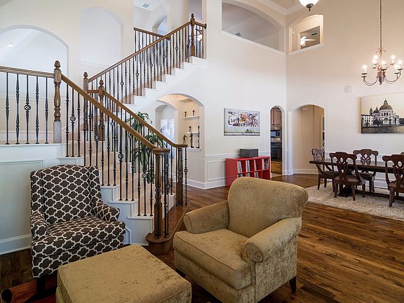 Gorgeous Northridge Estates home on lush lot! Beautiful hardwoods, soaring ceilings, plantation shutters, and very well maintained! The spacious & open entryway is flanked by the sophisticated dining room with chandelier and formal living room with plantation shutters. Elegant family room with wall of windows, fireplace, built-ins, high ceiling, and bar with wine refrigerator! The fabulous kitchen offers an island, breakfast bar, granite countertops, stainless steel GE Profile 4 burner gas cooktop, stainless steel built-in microwave, walk-in pantry, and nearby breakfast nook with patio access. Also downstairs is the guest suite with private bath and beautiful master with sitting area, hardwoods & spa-like bath with jetted tub, separate shower, and oversized walk-in closet. Upstairs spaces include large secondary bedrooms, game room with tiered ceiling, and pre-wired media room! Enjoy the wonderful backyard with play yard, board-on-board fence, mature trees, and open patio. Additional features include a utility room with built-ins, 3-car garage, and community pool!