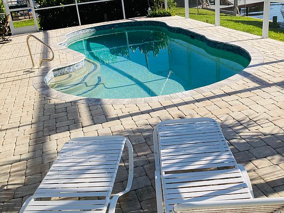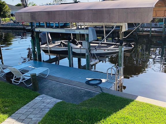 Our fully-furnished home is located in beautiful Cape Coral, Southwest Florida on a Gulf access canal. It is near Fort Myers and is a short drive to Pine Island, Sanibel and Captiva. It features three bedrooms, two bathrooms, two car garage, boat lift/dock, large lanai area with private electric heated pool. Gas grill, appliances and furniture provided. Its move in ready! Open family room, kitchen and dinning room with triple sliders to pool area. Large pool area with outdoor seating inside lanai. Master bedroom with king size bed, walk in closet. Master bath with walk-in shower. 2 guest bedrooms, one with queen bed and one with two twin beds. Since Cape Coral is the gateway to the finest fishing in south Florida, you will enjoy the gulf access canal right in your back yard. Go out to the Gulf or stay in the river or canals for some great fishing! Owner maintains landscaping and pool maintenance. Renter pays for all utilities, including internet. No smoking or pets.