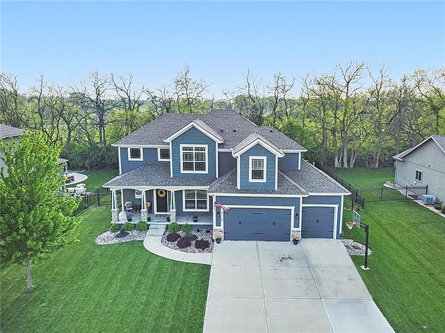 Over $37,550 in Improvements!! Updated 2-Story that backs to trees and greenspace with steel fencing and stone firepit patio, lots of room to entertain! Large kitchen with island, huge walk-in pantry (11 x 5) and coffee bar with mini Fridge. Great Master Bedroom, updated master bathroom with large shower and seperate tub! Basement has spacious wet bar with granite top, sink and mini-fridge. Lower level rec room is spacious! Additional bedroom & full bathroom in basement. Improvements include: Jun-19 Fence (3 sides, 2 gates w/ Magna Latch, 1 double gate) and Stone Firepit Patio (Steel firepit does not stay with house), Island Penants, Dining Room Light, All Exterior Coach Lights, Wire Shelving in Garage, Nov-19 Exterior Repaint w/ Sherwin Williams Premium. Feb-20, Google Nest Cameras - Driveway and Back Patio, Mar-20 French Drain Across entire width of back yard, buried downspouts in backyard, Jul-20 Replace sheathing, ice & water shield and shingles on SW corner of roof and over Porch, Aug-20 Convert 3rd garage door to high-lift and install jackshaft opener, Expand driveway to 3 full lanes, Mar-21 Interior repaint w/ Sherwin Williams, Apr-21 New carpet on stairs, main floor and all upstairs, Jan-22 Replace compressor on Kitchen Refrigerator. Home is well maintained! About the HOA: The community offers families a wide assortment of amenities, including three swimming pools with covered cabanas, a community clubhouse, miles of neighborhood sidewalks for walking, two community playgrounds, and a sand volleyball court. The community is connected by sidewalk to adjacent Osage Trails Park, offering residents access to walking trails, picnic areas, and a playground.This house is only 3 homes down from that!! The Stoney Creek Estates HOA is just a few minutes’ drive from the charming downtown Lee’s Summit shopping district, three superior golf courses, and scenic hiking, fishing, boating, and camping at both Longview Lake and James A. Reed Memorial Wildlife area.