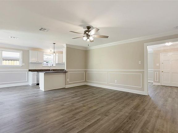 What a lovely renovation in Metairie! This home features a living room/dining room combination w/ wood look vinyl floors throughout. Kitchen with stainless steel appliances, granite countertops, microwave, dishwasher, range. New sliding glass door in breakfast area,