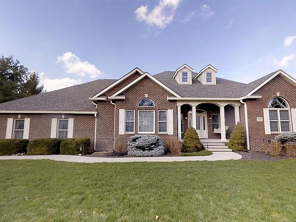 This full brick, luxury home in highly sought after Delaware Community School Corporation is situated on an acre of manicured lawn with beautiful country views. This 4 bedroom, 3 ½ bath home is ready to be yours. This home abounds with natural light and views of the backyard and inground pool. The primary suite includes a large bathroom with a walk-in shower and water closet. The primary walk-in closet was recently upgraded with custom Elfa closet systems by the Container Store. The 2 remaining bedrooms on the first floor have large windows, new carpet and are connected by a Jack and Jill bathroom. The great room has a gas log fireplace, new hardwood flooring and a full wall of windows overlooking the stunning backyard. The kitchen in this home has all new LG appliances, upgraded tile backsplash, Cambria quartz countertops, gas log fireplace and new hardwood floors. An open staircase leads to the basement where you will find a large rec/family room and wet bar. Also included in the basement is the 4th bedroom and a full bath. The luxury amenities continue outdoors with a beautiful inground pool with a new extra thick liner, sand filter and high efficiency gas heater (all done in 2020). The all brick pool house and covered concrete porch are all touches that make the outdoor space a great place to be. This home has been immaculately updated and maintained. It is ready to be your dream home.