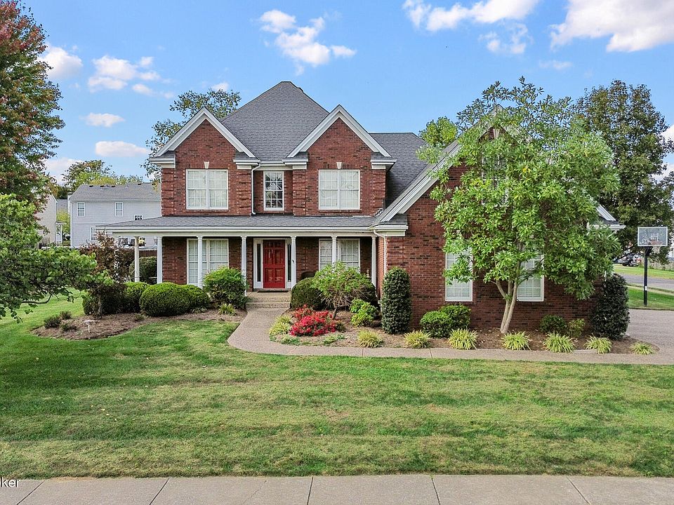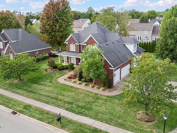 Welcome to this Executive home in the prestigious Woodmont neighborhood! Country Club style amenities abound with 13 acres of open space including the neighborhood clubhouse, swimming pool (swim team), tennis and pickle ball courts, playground, fitness center, and over 4000 feet of scenic nature trails through the woods. This lovely brick home on a large corner lot is just ONE BLOCK from the pool (no driving) and has so many amazing features including stunning hardwood flooring throughout most of the first level, custom draperies and updated lighting and plumbing fixtures. You will love the huge first floor primary bedroom with ensuite bath and a large walk-in closet. There are four additional bedrooms upstairs. The top of the line kitchen includes granite and Bosch appliances! The large finished basement is perfect for entertaining the entire family. It includes a built-in wet bar, wine cooler, half bath, and room for whatever games you enjoy as well as a large storage space. An added bonus is the three car garage which means the teenager's car, your sports car or boat will have its own spot inside. This family-oriented neighborhood is located close to the best shopping (Publix) and dining Louisville has to offer as well as being close to the interstates for added convenience. The two HVAC systems are only four years old. See today!