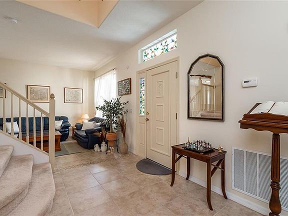OMG 2 SUV's! Furnished home complete with 2 vehicles in the garage. Rarely available find in Highland Ridge. Pride of ownership shows in this spacious, pristine, move-in ready, 4 bedroom home. Tile flooring throughout the ground floor provides easy maintenance. The kitchen becomes the chef's delight, with ample cabinet & counter space, an island & a closet pantry. The kitchen opens to the large dining area from which glass doors lead to the oversized, screened lanai, all perfect for entertaining. The luxurious owner's suite features an updated bathroom, garden tub, dual sinks, and an office/reading room that can easily be converted to a 5th bedroom. Dual a/c systems allows for energy efficient climate control, and a ventilation system keeps the garage from getting too hot. Upstairs a/c unit new in 2018. Conveniently located near both downtown Bradenton & Sarasota, minutes from the Sarasota/Bradenton International Airport, world renown IMG Academy, and easy access to the sandy Gulf beaches. Low HOA dues & no CDD fees. Come see it today, just bring your toothbrush. all that's missing is you.