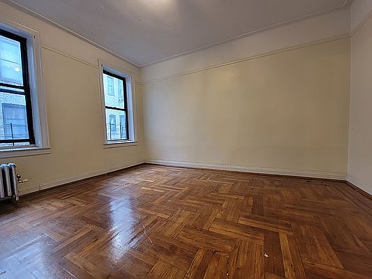 Oversize apartment with an eat-in kitchen. Steps from the D line. This apartment is full of natural sunlight. It has a large foyer that can double as an office and a living-room. Two huge rooms that can be used as bedrooms or a living room each has double windows. Tiled bathroom with tub. Three walk-in closets and tons of storage space! Enjoy the conveniences of a live in Super. Located near many supermarkets and eateries. Heat & Hot Water are Included. Awesome combination of price point and location! Cats are welcomed. Dogs are not allowed. Don't Delay; Come take a private tour!