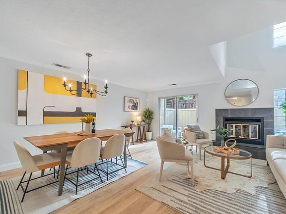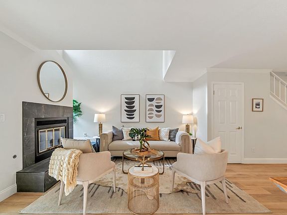 Lovely End Unit Townhouse with Outstanding Floor Plan! This home features; Bright Living Room w/ High Ceilings, Elegant Dining area, Modern Kitchen w/ Shaker Cabinets, Oversized Sink, Kraus Faucet, New Microwave, Pantry, Breakfast Bar, separate cozy Breakfast Nook, new water proof laminate floorings, Spacious & Private Patio, Gorgeous Primary Suite w/ Vaulted Ceilings conveniently located on Ground Level, Walk-In Closet, Large Primary Bath w/ gorgeous Double Sink Vanity, Half Bath downstairs, Another Big En Suite Upstairs, the 3rd Bedroom w/ Vaulted Ceilings, Closet Organization, and Adorable Balcony. LED lights on both bedrooms upstairs. Storage closets on each floor. Central Heating & A/C replaced in 2016, Attached 1 Car Garage has Washer/Dryer/Attic storage space with pull down ladder. Extra Storage Unit next to front door, Adjacent Open Space, Close Proximity to Oakhill Park, and Amazing Schools, Easy access to Freeway 680 & 580. Don't miss out on this opportunity!