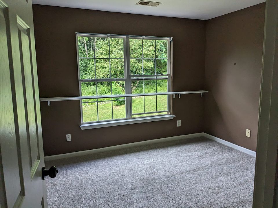 The room is about 140 sqft, big enough to comfortably fit a queen bed, desk, dresser and have room left over. The Bedroom has an east facing window bringing in a lot of light along with view of a calm, large greenbelt behind the home. The room has a medium sized walk-in closet.