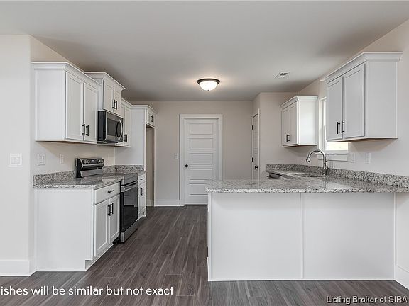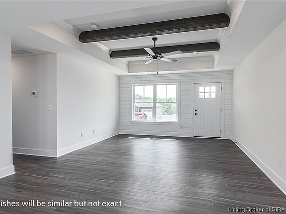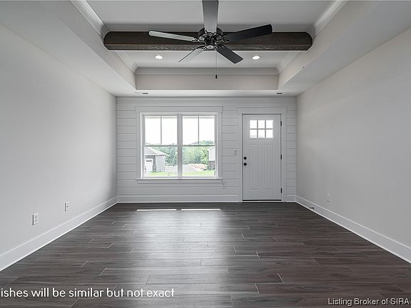 FLOYDS KNOBS NEW CONSTRUCTION! The new "GRAYSON" floor plan with an unfinished basement. Quality built by ASB and just minutes from Highlander point amenities, Floyd Central, Highland Hills, and approx 15 minutes from Louisville, this 3 bed, 2 bath home has minimal steps, on a slab, and boast nearly 1400 sq ft! Stepping into the great room you will notice a beautiful tray ceiling, LVT "life proof" flooring, Bed mold trim panels, and wide open to the kitchen dining area! The kitchen is well equipped with LVT flooring, GRANITE or Quartz countertops, breakfast bar, big dining area, stainless steel appliances, and pantry! Right off of the kitchen area is a separate mudroom and laundry area with a folding table, closet, and dropzone bench area with hooks! The owners suite is a great size of 13'X13' and offers a private bath with a CUSTOM TILE shower, dual vanity with granite countertops, and a big walk in closet! Bedrooms 2 and 3 area also a good size of 11'X11' and right across is a guest bath with single vanity and tub shower combo! Builder provides an RWC Warranty at closing.