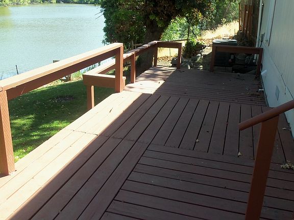 SALE PENDING! 3 bedroom MH 1782 sq. ft. right on the lake! Large shop/garage, storage building too! 3 bedroom, 2 bath. Large deck in back yard for enjoying your view of the lake or go fishing! Large covered deck in front with fenced yard. Washer/Dryer, dining table and chairs included! RMLS 14557026