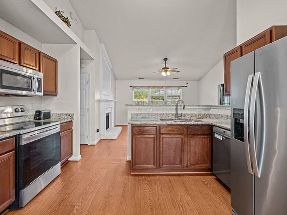 Welcome to this beautiful single-story brick ranch-style home nestled in a quiet Raleigh neighborhood. With 3 spacious bedrooms and 2 full bathrooms spread across 1,231 square feet, this home offers comfort, functionality, and style. The open living area features warm hardwood flooring and a cozy fireplace, perfect for relaxing evenings. A striking archway adds character and charm, leading you to the updated kitchen complete with granite countertops, stainless steel appliances (stove, refrigerator, dishwasher, microwave), and plenty of cabinet space. A washer and dryer are also included for your convenience. The primary suite is conveniently located on the first floor, while all bedrooms are carpeted for added comfort. Step out back to a fully fenced yard so enjoy the screened-in porch and adjacent patio great for outdoor entertaining. Additional features include a one-car garage and great curb appeal. This home blends cozy living with modern updates in a fantastic Raleigh location. Bi-weekly mowing is included in the rent. **All Milton Realty Group residents will be enrolled in our Second Nature Resident Benefits Package. This is a $45 additional monthly fee- see flyer in the listing photo for more information.**