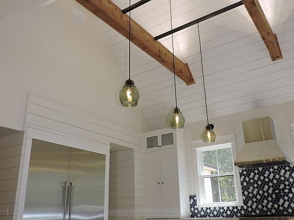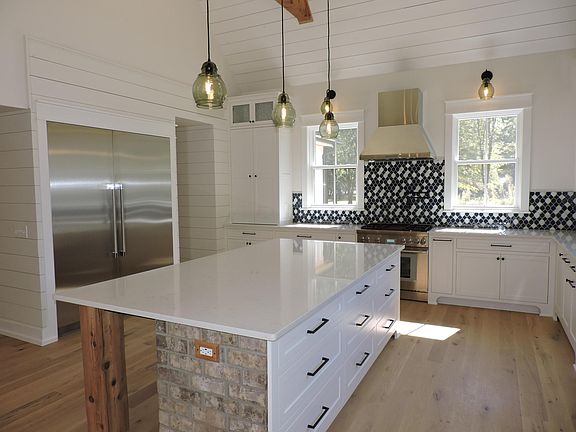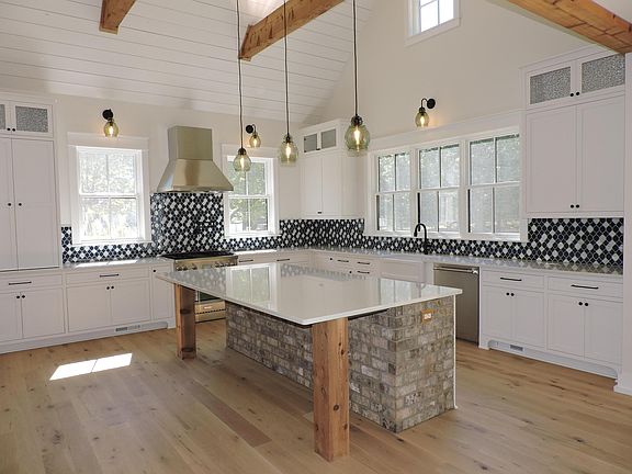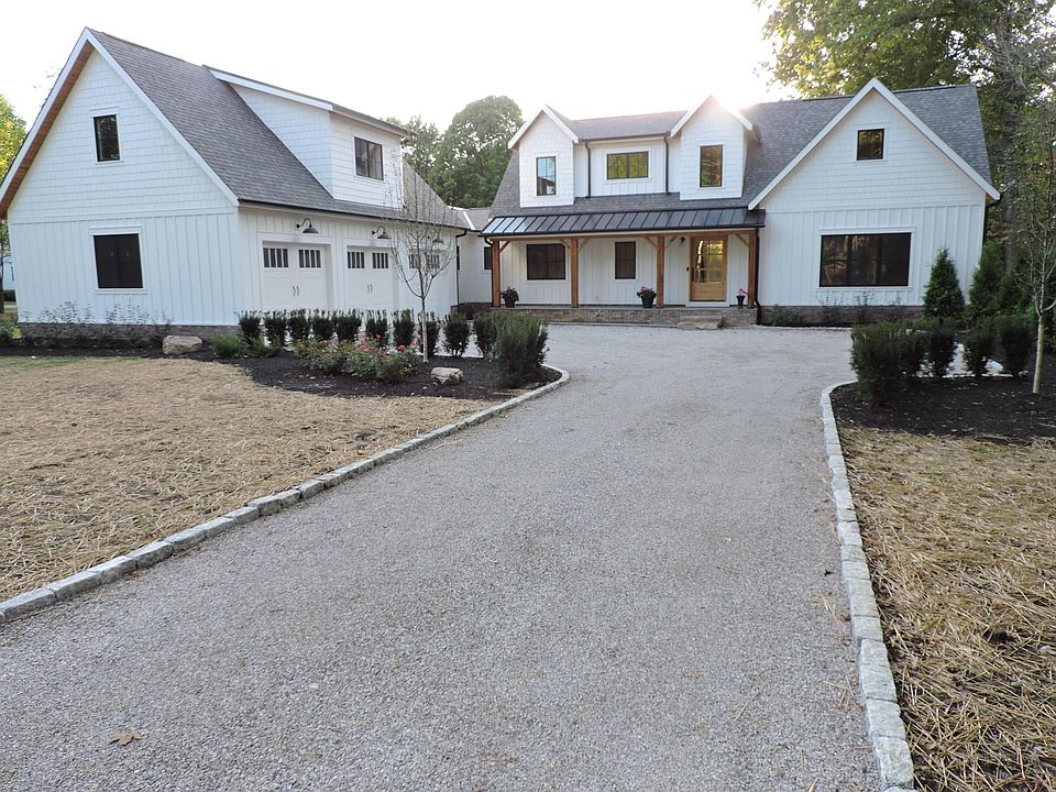 Gorgeous rustic farmhouse featuring modern details throughout. Natural materials such as reclaimed wood, stone, and steel compliment the open floor plan adding comfort and warmth in every room. This is a truly custom experience featuring reclaimed solid white oak hardwood floors, handcrafted white oak stairs and handrails, custom builtins and shelves through out, and the ceilings are highlighted with reclaimed cedar beams, just to list a few of the upgrades. This rare spacious lot is free from the building restrictions imposed on similar homes within the area while being less than a half mile from the New Albany Country Club and just over a mile from all the amenities of downtown New Albany. This one of a kind lot has the space you need to build any amenity you desire