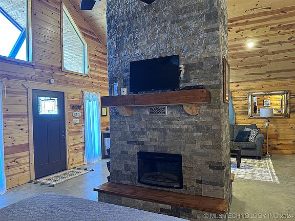 Use as VRBO or Personal Residence.....your choice! Recent Construction with plenty of character. Divided Great Room with Living, Dining, Kitchen and Bedroom. Massive Stone Electric Fireplace anchors the room division. Polished Concrete floors and Distressed Pine Walls have a cozy feel that makes you want to put your feet up and stay a while. The Kitchen is tucked into a corner with all the necessities and Cute Spool Table and Bar Stools.