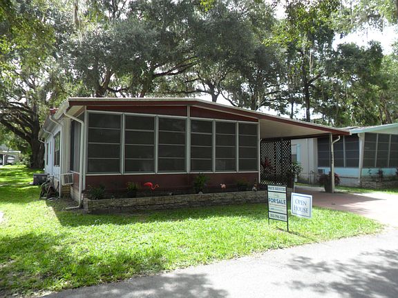 Ready to move in! Make an offer today! This is a well taken care of double wide. There are new laminate floors in all rooms except the bedrooms which are carpeted. There are ceiling fans in each room, new membrane roof over the sun porch. Carport for parking with a side patio stones laid to get you to the golf cart storage area. Background and credit check required. Monthly lot rent $588.91/mo. Many amenities in this 55+ community including outdoor pool, indoor pool, sauna, jaccuzi, pickle ball, shuffle board, club house and many groups and clubs to join.