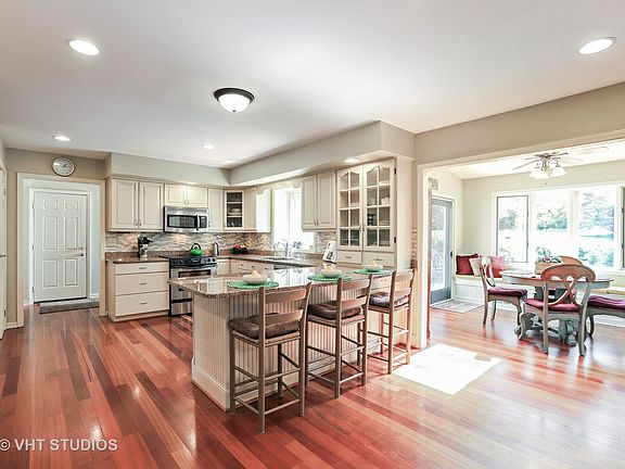 Enchanted custom home in an extraordinary setting. This wonderful home is spacious yet warm and inviting. Updated kitchen boasts gorgeous cabinetry, granite, a large peninsula, and recessed lighting. The breakfast room invites you to relax and enjoy the serene view of lush perennials in the large, private backyard. Grab your book and enjoy the light and bright heated sunroom year-round! The entire first floor has great flow and is wonderful for entertaining. All bathrooms have been updated, and bedrooms are generously sized. The master bedroom suite and over-sized walk in closet will WOW you. The spa-like master bathroom boasts a luxurious tile shower and soaking tub. Features include solid 6 panel doors, Pella windows, Brazillian cherry floors, finished basement, and a 3 car extra deep garage. Located in a highly sought after neighborhood with park and tennis courts. Easy access to Rte. 14, shopping, Metra stations, & all of the conveniences! Top rated schools. Don't miss this gem!