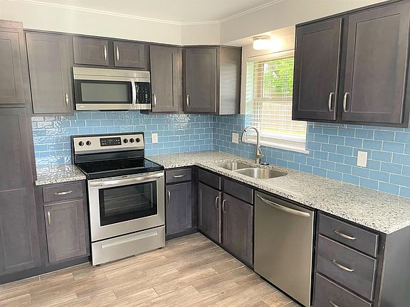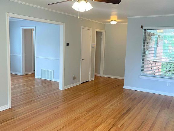 This charming 3 bed, 1.5 bath, 1 car garage house is waiting for you to call it home! A covered patio greets you and your guests and welcomes you in to an open living room with refinished original hardwood floors and a big picture window to let in the sunlight. Brand new windows keep bills down! Crisp white trim and a neutral color palette matches nearly any decor. Renovated kitchen with newer cabinets, granite counters, glass tile backsplash and stainless steel appliances. An accommodating dining room can also function as a work-from-home space. Lots of built-in storage in the hall! All bedrooms have hardwood floors & ceiling fans with decent closet space. Classic black & white bathroom with newly refinished cast iron tub. W/D hookups in kitchen. Fully fenced yard, DOGS OK. This home is super clean and ready for new tenants! Tenant responsible for bills. Credit check fee, no other application fees or b.s.!! Deposit is $100 less than rent. Fully fenced yard and no carpet - DOGS OK! Tenant responsible for electric, gas, water/sewer/trash and lawn care. The windows are newer which should help with energy efficiency compared to other older homes. Prefer minimum 1 year lease, willing to negotiate rent rate or other terms for 2 year+ lease.
