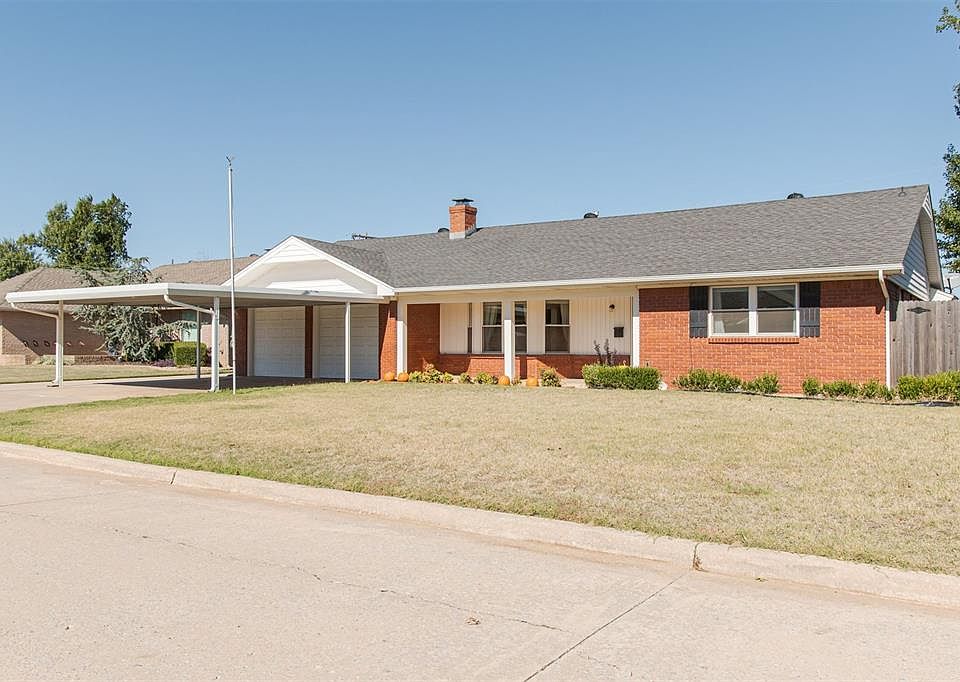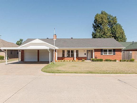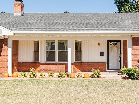 A timeless red brick, ranch style home awaits! This property is located just blocks from NW Expressway, Hefner Parkway, Lake Hefner, several hospitals & shopping. Pride in ownership is evident throughout- this home has been so well maintained over the years. A perfect covered porch leads you into the home and to the generously sized living room, complete with fireplace w/ blower, built ins and great natural lighting. A dining room fit for hosting holiday dinners! The spacious kitchen features an abundance of newer ceiling-height cabinetry and an eat-in kitchen area. There is no shortage of storage options in this home- with two coat closets and two linen cabinets for your convenience. Master suite offers walk-in closet and bathroom with shower. The vintage tile in both bathrooms is both charming and timeless! A covered patio and large backyard are the perfect place to play. Carport in front provides additional covered parking as well as extra concrete pad. A long list of updates including vinyl windows and new water heater! This is a solid, quality place to call home.