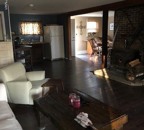 Very cute Mostly Re modeled (2) Bedroom Ranch. Hardwood floors Tile Bath and working Fireplace centrally located. EBB heat. Enclosed front porch. Nicely sized (2) Car garage and circle Driveway