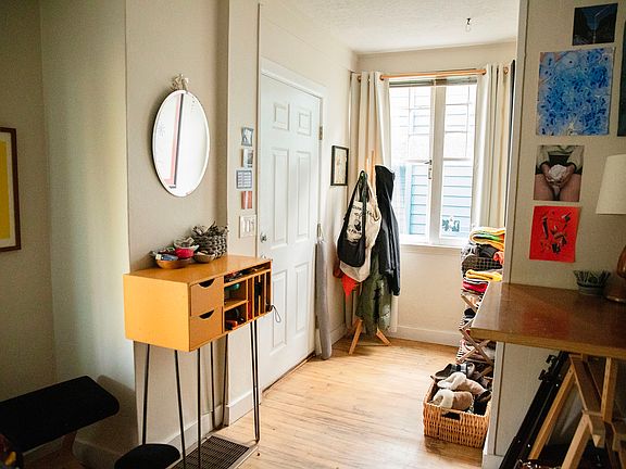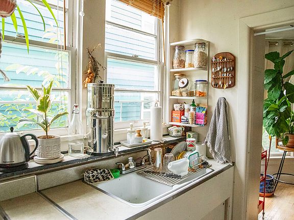 Enjoy a bright, south facing, 1 bedroom apartment in a converted 1895 farmhouse. The apt. is about 750 square feet, on the first floor of a triplex (4-5 steps up). - ONE CAR GARAGE (200 s.f.) is clean and secure (electric door opener) - perfect for bikes, boat, car, etc. - COVERED PORCH holds a table and several chairs - GARDEN has 2 vegetable beds, south-facing. Apartment has: - large windows in open living/dining room space, which has old built-in bookshelves to demarcate the spaces - hardwood floors throughout - 1 bedroom with a large closet - bathroom with a tub/shower - lots of storage space in the basement - access to free washer/dryer in the basement - a separate entrance - a very small galley kitchen - tenants in the other two apts. in the building are respectful and friendly. - a non-smoking, NO pets apartment The apartment is in a fabulous location if you want both quiet and access to all the amenities of the Belmont and Hawthorne neighborhoods. It is located at S.E. 41st and Taylor on a quiet designated biking street. Within just a few minutes walk you can get to hundreds of shops and restaurants, 3 bus lines, the library, Laurelhurst Park and Sunnyside Park. Mt. Tabor Park is close by, as well. Rent is $1550.00/month, including apartment, garage, basement storage, water, sewer, garbage, common washer and dryer in basement. Tenants pay gas heat and electricity. Available August 15. We are looking for a 12 month lease with conscientious tenant(s) with good references. There is a $35.00 third party credit check fee (per adult) in order to secure the apartment and a refundable security deposit of 1 month's rent. This is a non-smoking, NO pets apartment. Thanks. Rent is $1550.00/month, including apartment, garage, basement storage, water, sewer, garbage, common washer and dryer in basement. Tenant pays gas heat and electricity. 12 month lease with conscientious tenant(s) with good references. There is a $35.00 third party credit check fee (per adult) in order to secure the apartment and a refundable security deposit of 1 month's rent. This is a non-smoking, NO pets apartment. Thanks.