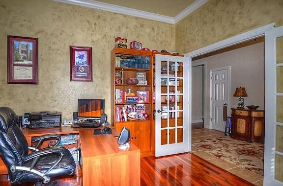 Decked out 4 bed, 3.5 bath, 3 car tandem garage with separate study just steps from Roosevelt. Built by Muirfield the home features an split plan with 3 downstairs bedrooms. One bed, full bath and bonus room upstairs. Wood and tile flooring, large master bed and bath with ample walk in closet. Three car garage is extra deep and has a recently installed storm shelter. Cascade provides green spaces, a community building and pool!