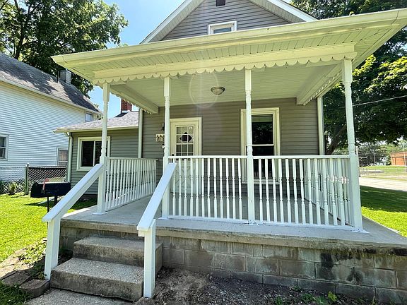 Adorable 2-3 bedroom, 1-1/2 story home on a corner lot in Sterling. Low maintenance. Open front porch perfect for a swing. Newer laminate in living room and separate dining room or office. Spacious kitchen with breakfast nook, plenty of cabinets and appliances included. Roomy main floor bedroom. Laundry and full bath with tub/shower are also on the main level. Huge 2nd bedroom on the upper level. Plus bonus room that could be 3rd bedroom (walk-thru). Deck off the back door. Chain link fenced backyard. Roof, gutters. vinyl siding and vinyl replacement windows (2012). Central air (2020) Rubberized roof on both porches. Motion detection light on front porch. Spacious 2 car garage on the alley with openers. Oh so handy location, close to park, schools, restaurants, shopping and more!