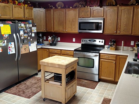 Split-level home with kitchen, living room, bathroom with garden tub and shower, 1 bedroom and an office on the middle level. Above the garage is the master bedroom with master bathroom and large walk-in closet. On the lowest level there is 2 bedrooms, a bathroom and living room. Attached double garage, detached 24 x 28 unfinished shop, large fenced yard on three lots, and a large fenced garden spot. All appliances stay with the house. For more pictures or information feel free to call/text.