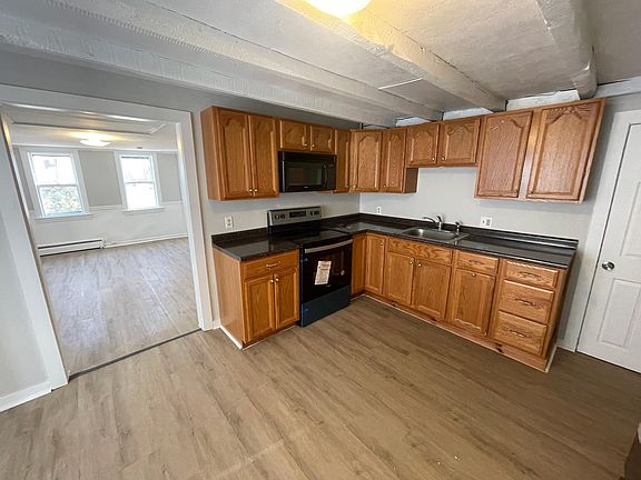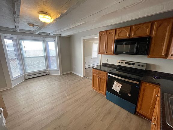 Large first floor apartment with new flooring, stainless steel appliances and paint throughout. Plenty of storage and closet space. Heat, hot water, water/sewer and trash are included. Tenant just pays electric. Plenty of off street parking and dumpster onsite. Coin op laundry in building. Pets allowed with fee.