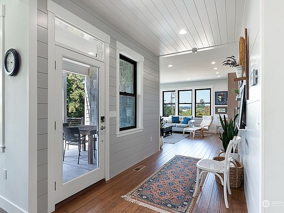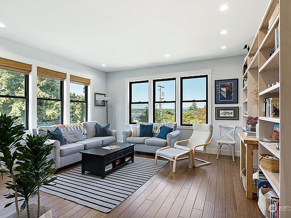 Timeless Cape Cod-inspired gem in desirable Cap Sante radiating charm & craftsmanship. Enter to bamboo floors, feature shiplap & stone walls. Chef’s kitchen with dining shines w/quartz island+black granite countertops, sliding door to walk-in pantry w/coffee bar. Relax in the living room with built-ins & stone fireplace. Upstairs rec rm, where vaulted ceilings & abundant windows fill the space w/natural light. Covered & open air upper deck+spiral stairs to captains deck with Guemes Channel & downtown views. Relaxing primary suite boasts scenic views, ensuite bath & walk-in closet. Gardeners delight exterior offers fenced yard, garden shed, lush landscaping & raised beds plus extra parking off alley, 2-car garage w/huge storage rm. Must see!