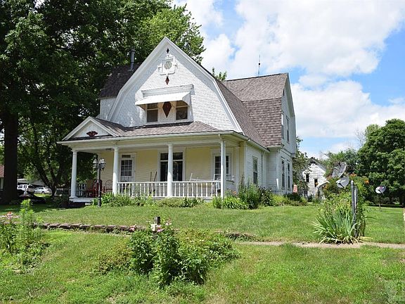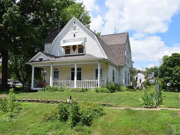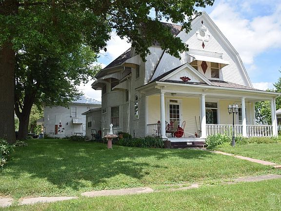 Pictures tell the story of this 2-story, 4 bedroom, 1+3/4 bath home with extra space for kid hangout or man cave in the spacious basement. The entryway stairwell has an original stained-glass window with beautiful and natural refinished woodwork throughout the main floor. 2 sets of oak panel pocket doors and a set of glass French doors open up the rooms and with lots of windows for light and bright living. There is a formal living room area, large formal dining room and laundry on the main floor with a small built-in banquette in the kitchen. Bedroom on the main floor can be utilized for a spacious office. The furnace and hot water heater are newer, the house wiring updated within the last 10 years. The double garage has a second-floor storage area and another garden shed in the back yard. There are 5 new window awnings being installed along with a new shingle roof complete with new gutters, leaf guards and downspouts before buyer takes possession. Don't miss the opportunity to claim this beautiful space for your family.