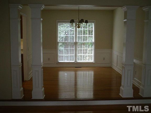 Great home in prime Davis Drive location in Cary! Private lot at the end of cul-de -sac backing up to wooded area. Hardwood and Laminate wood flooring almost throughout entire home. Formal living and dining rooms, Bright and open kitchen with large breakfast area, and large family room with wood burning fireplace. Huge master suite (19x13) and all other bedrooms nicely sized on second floor. 1 bedroom has private office room. ONE small pet considered. Close to everything - this will not last long!