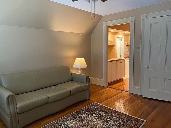 This top floor unit in a well-maintained Victorian has sparkling clean hardwoods and tile and is freshly painted throughout with new cabinets in the kitchen - and also has a private 15 x 15 deck for relaxing on a pleasant evening high above trees! This is a NON-SMOKING PROPERTY. Sorry, but no pets. There is off street parking for the residents. Included in the rent are heat, hot water, electricity, as well as internet. Also includes central air condiitoning. Will be making appointments for new residents. Owner lives on property and the property is a little over a mile to the commuter rail as well as near shopping, post office, restaurants and a bank. Owner pays for utilities as described before. No pets are allowed and this is a NON-SMOKING property. There is NO guest parking available at this property. The owner requires first, last and a $500 cleaning/security deposit.