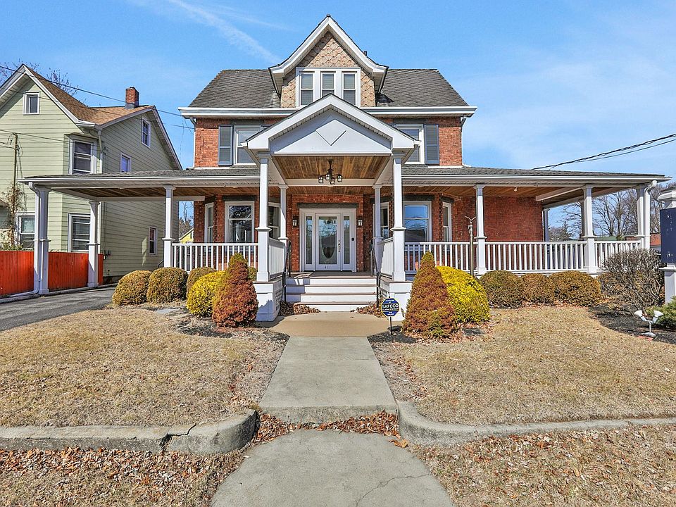 This stately brick beauty offers a residential opportunity and includes three contiguous tax parcels with immense possibilities! The sprawling, 5,128+ square foot 3+ level building offers residential, or mixed use. Meticulously maintained with hardwood flooring as well as wall to wall carpeting, and full operating kitchen on the second floor. There are two finished basements, the main level is made up of mostly open spaces with restrooms and two staircases that access the second level that was most recently used as a living quarters and includes a partial third level of additional living space, studio or office. Natural light floods throughout. The large eat in kitchen includes granite counter tops and high-quality wood cabinetry with stainless steel appliances. There is a freight elevator that accesses both basements, and the main and upper levels to do the heavy lifting. Other features include high tech matrix wiring in place, a security system as well as an exterior sprinkler system for easy management. Don't miss the view from the rear screened and open porches and the covered front porch of this stately building. The property includes the main building and detached garage with three overhead garage doors, as well as two separate buildable tax parcels. These lots can be kept for expansive parking, improved upon or sold individually. This property fronts both Albany Avenue and Manor Place with the town park across the street. The vacant land has the same zoning, with additional uses ranging from an arcade to a salon, commercial, and, most desirable, apartments (also single-family). The large parcel of vacant land has approximately 75 feet of frontage on the back street (Manor Place) and is 100 feet deep before it narrows to Albany Avenue. The zoning allows for 70/30 ratio building lot coverage, and buildings can reach up to 2.5 stories. There is no parking requirement; however, pavement coverage is a factor in the area's overall coverage. In theory, a buyer could put up an 8-unit apartment building or larger on this vacant parcel. Setbacks on the vacant land are 10 feet in the rear, 5 feet on the side. *** PENDING CONTINUE TO SHOW***