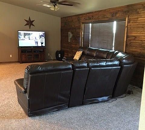 Home built in 2015 sits on approximately 3 acres, has 3 bedrooms all with walk in closets and 2 full bathrooms, great kitchen with stainless steal appliances and a nice pantry, open living space, dining room, master suite has shower and whirlpool tub, wood flooring and carpet in the bedrooms. Outside is a nice large patio, 50X40 Barn with concrete floor and a wired for 220, and has a 20' lean to.