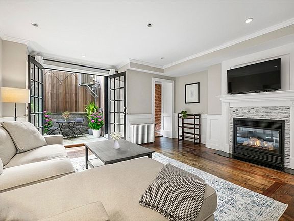 Nestled in the heart of Back Bay, this impeccably renovated 2 bed, 2 bath home boasts a private patio, private entrance and parking space. Step into the spacious living and dining area adorned with a cozy gas fireplace and floor-to-ceiling glass French doors, seamlessly connecting the indoors to the serene bluestone patio. The sleek kitchen featuring quartz countertops, stainless steel appliances, gas cooking and delightful exposed brick also offers easy access to the patio for al fresco dining. The expansive primary suite offers a king-sized bed wall, ample closet space, and a brand-new spa-like en-suite bath featuring a double sink vanity and step-in shower. The second bedroom accommodates a queen-sized bed and is conveniently located adjacent to the newly minted second full bathroom with its own step-in shower. Hardwood floors throughout, central A/C, in-unit washer/dryer and a generously sized bonus storage space is included with this home.