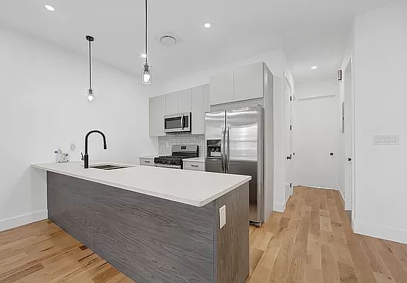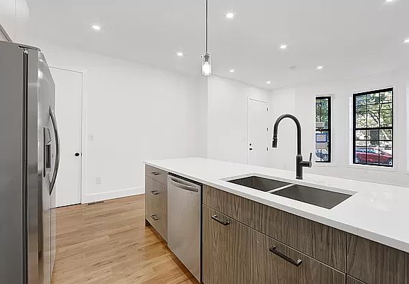 For further Information/showings please call or text Morris - 646-463-0717 or Rachel - 516-810-0881 Space, style & modern luxury come together at 411 Bradford Street. A 20x45 built solid brick two family belly brick townhouse that has undergone massive renovation by an expert team of contractors and designers. This turn key move in ready two family is nestled on a beautiful picturesque block of bustling East New York, and will captivate you from the moment you arrive with its warm & welcoming energy. Perfect opportunity for buyers looking for space, plus income generating rental property to assist with mortgage payments. Configured as 3 bedroom 2 bath rental unit which has the ability to generate $2,500/month to assist with mortgage payments. The garden floor consist of 2 bedrooms 2 baths and can easily be used as a garden-basement duplex with the high ceiling full finished basement to create additional living/recreational space. Both units enjoy expansive sun drenched open concept living/dining areas. Beautiful chefs granite kitchens equipped with floor to ceiling custom cabinetry, boast full sized stainless steel appliances & equipped with island for bar stool seating. Spacious bedrooms with ample closet space, as well as a master suite with private en suite. Fully tiled bathrooms boast state of the art wall & floor tiles. Renovations include brand new hardwood flooring, recessed lighting, central HVAC, electrical, heating & plumbing systems throughout. The high ceiling full finished basement is equipped with both interior & exterior access. Lush rear yard to enjoy family & friends outdoor gatherings. 411 Bradford Street is conveniently located with close proximity to major transportation which makes commuting a breeze, schools, shopping centers, restaurants, cafes, parks, Pennsylvania Avenue, Linden Blvd, Pitkin Avenue, and many other vibrant neighborhood amenities. Come explore all the possibilities of this move in ready two family townhouse and grab your opportunity to be apart of the East New York Vibe!