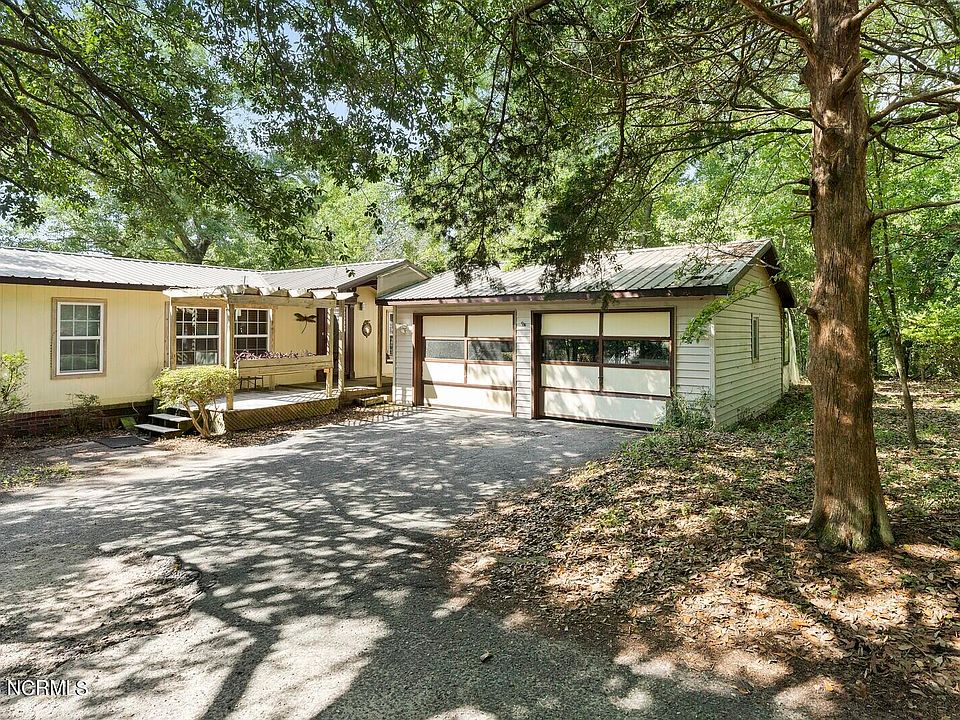 Extras include a large elevated deck off the back porch which sits above a workshop, a sunroom, a marshfront dock with views and high-tide access to the waterway for kayaks, SUP's and/or small skiffs/boats. On the side of the house is a detached shed, and a small greenhouse sits behind the detached stick-built garage, which is large enough for 2 cars and a motorcycle with plenty of extra storage and workspace. The exterior steps and walkway to the dock just need some TLC, to create a beautiful place to enjoy the evening views of the waterway and the island.