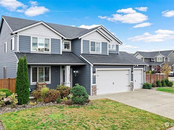 Best house in the neighborhood on the largest Lot! Welcoming front porch leads into this very open concept home with room for all. Gourmet kitchen with granite countertops, top of the line appliances, HUGE island with bar space and dining area. Kitchen flows into spacious great room with grand fireplace. French doors to office and primary bedroom, with 5 piece en-suite bath. Walk-in closets in 3 bedrooms, double closet in the last. Giant Bonus room with vaulted ceilings greets you off your upstairs landing. Utlilty room has a separate sink, as well as one in the garage! 3 car garage with tons of built-in and drop-down storage. Situated in charming downtown Orting, with gorgeous views of Mount Rainier! Don't miss this fantastic opportunity!