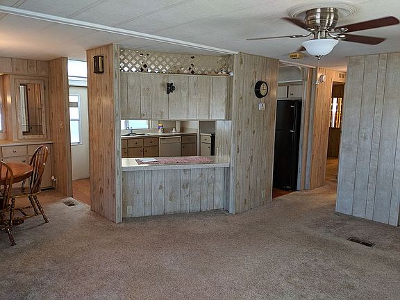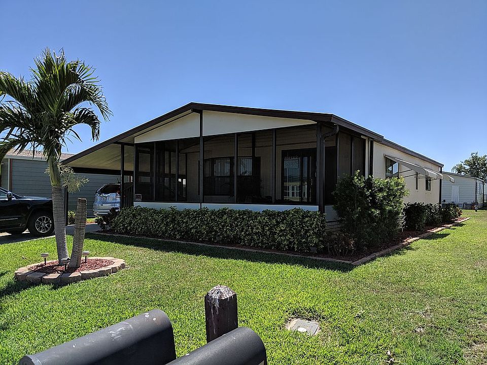 This beautifully-kept home in a 55+ community is perfect for a single person or couple that doesn't want a lot of space to clean. It has a beautiful 10 X 24 screen porch that faces the east, so you can enjoy the sunrise each morning with your first cup of coffee. The porch has a privacy shade as well as a designer ceiling fan for your comfort. The kitchen has excellent lighting with a window as well to capture the natural light. The appliances include, range/oven, refrigerator, dishwasher and counter-top microwave. There is also a pantry in the kitchen and loads of cabinet space. The living room/dining room is L-shaped with lots of open space and is separated from the kitchen by an island counter. The dining room also has a built in hutch. The master bedroom is large enough for a king-sized bed, 2 bedside tables and 2 large dressers. It also has a walk-in closet and large bathroom area with shower. The second bedroom is also a good size with walk-in closet as well. The second bathroom has tub/ shower set-up with linen closet. The yard is well-landscaped with covered carport and shed attached to the house. The shed also has washing machine, which is new, and a dryer which is about 6 years old in very good working condition. This home is located in Palm Lake Estates which provide us with a beautiful pool, hot tub, clubhouse with gym, open pavillion for cook-outs and lots of activities for all the residents. The lot rent is currently $560.00/month. Palm Lake Estates requires that you undergo a credit check and criminal background check, costing $100.00 per couple or $100.00 for a single person in order to purchase this home. This is a wonderful location in West Melbourne and you will find it very convenient to restaurants, grocery stores and shopping centers. Please call Janet Moore at (615) 973-3688 for appt.