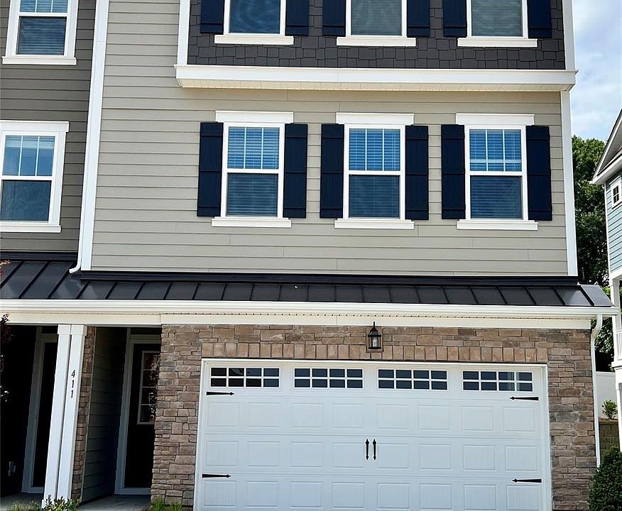 Wonderful large home with private backyard with views of trees and nature, end unit with tons of natural light. This home has 4 bedrooms, 3.5 baths with 2 car garage. First floor has a guest suite/office with walk in closet and full bathroom. Storage under staircase and drop zone to hang jackets and shoes. Go up the steps to huge kitchen, 10ft quartz countertop island, black matte finishes, gray cabinets with stainless steel appliances. Upgraded floors throughout. Double Covered veranda off the side of the home. Third floor has owners suite with 2 closets, large bathroom. Down the hall will be 2 additional bedrooms, hall bath and laundry room. Community is located to walking distance to Mecklenburg Swim Association, Chestnut Square Park that includes volleyball, soccer field/football field, tennis courts. Carolina Courts has indoor gym with pickle bath. Chestnut Square Park has entertainment with bands, festivals. Close to uptown Charlotte and Ballantyne.