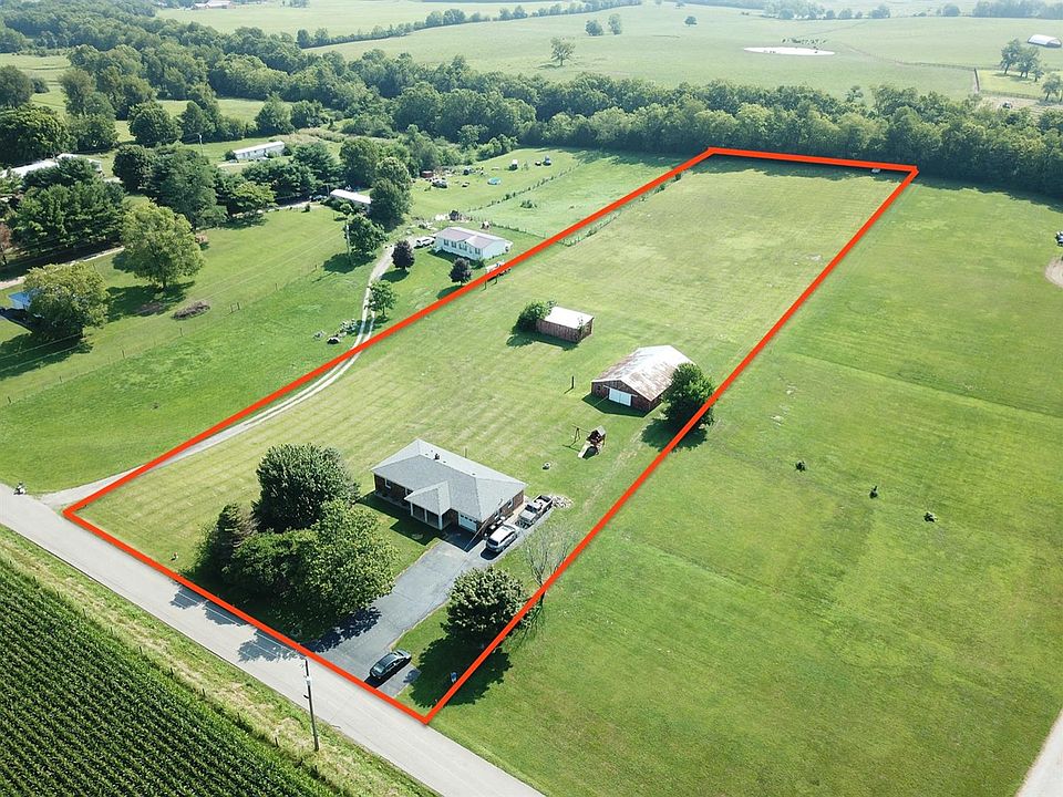 Sitting on 3+ acres check out this brick ranch on a partially finished basement that is located in the Burgin School district! 2 BD/1 BA with a bonus room that could be used for an office, storage, nursery or whatever you desire! This home has many updates including a new roof, flooring and light fixtures throughout, updated bathroom and much more! This home offers an open concept floor plan, which is great for entertaining your guest. You can enjoy your evening in the back yard around the fire pit or sit on the front porch and admire the mature trees. Call to schedule your private showing today! Home being sold as is, inspections welcome.