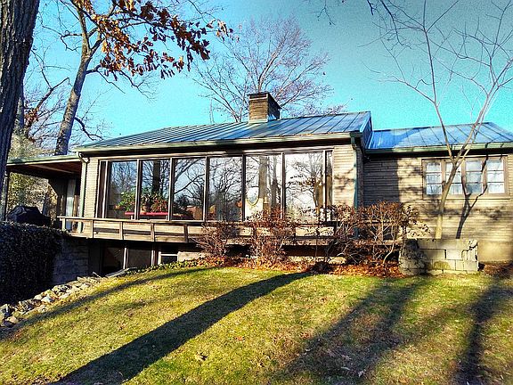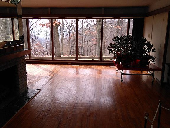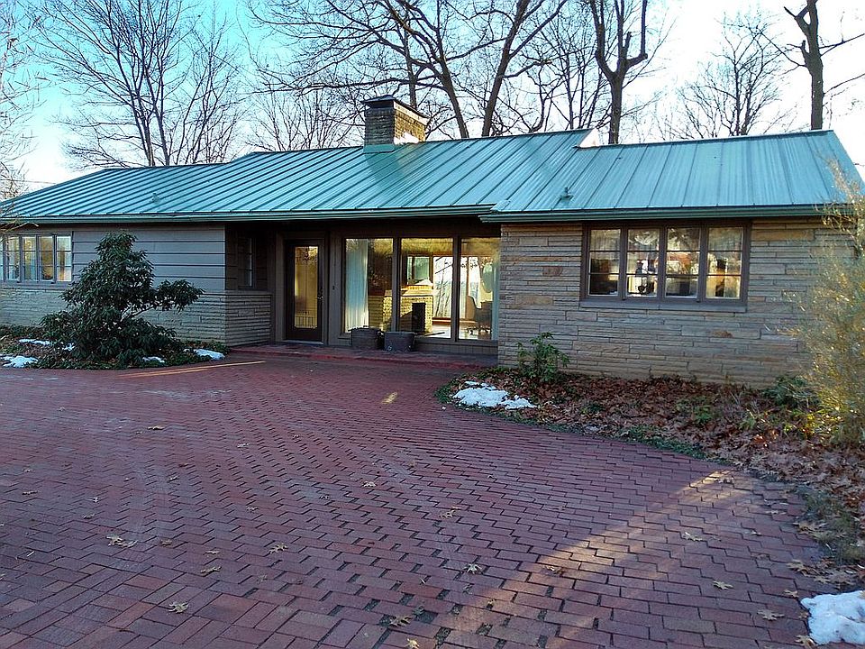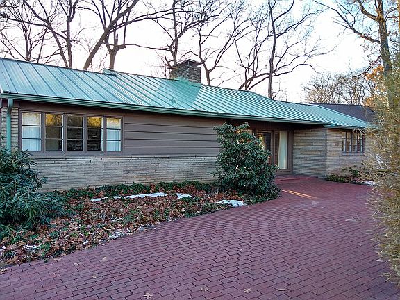 Frank Lloyd Wright apprentice/architect Bob Beharka designed and built this little mid century modern jewel box for his sister. Small in size and big in appeal with an open living area and expansive windows. A quiet street, a circular drive, a private back yard and a hilltop view compliment the location. Lower level with second lower level fireplace, now part of the basement, is a finished third bedroom and second bath. The metal roof, HVAC and water heater are newer.