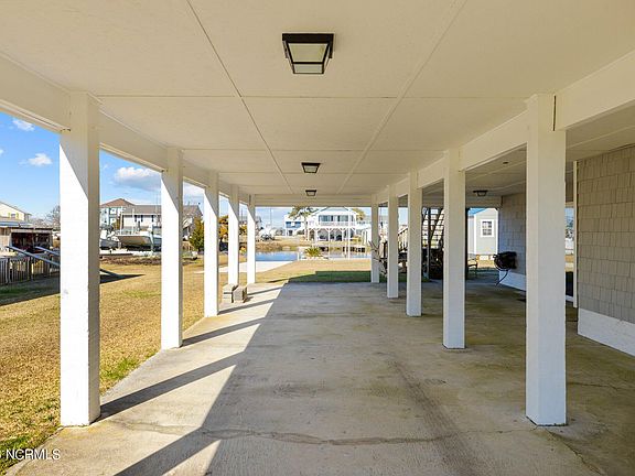 This vacation home checks off the most important boxes first! Waterfront, Private Boat Dock and Private Boat Ramp all part of this property. Then, there is the LOCATION. Walk to Historic Swansboro waterfront and events, quick boat access to the ICW or White Oak River, minutes to Emerald Isle beaches. The home offers large, high ceiling living room and kitchen/dining spaces, 3 bedrooms and 2 multi-use rooms with 2 full bathrooms on the main floor. Beautiful hardwood floors also soothe the eyes. Downstairs is a comfortable playroom for adults or children with a cool snack bar and a half bathroom. There's also a big ice machine, workshop and plentiful storage space. Outside you'll find a carport big enough for 2 cars or a boat and a nice storage building near the dock for water sport needs or yard care items. Wide canal leads directly to White Oak River.