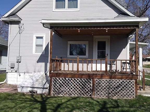 Nice 3 bedroom home on a corner lot with a wrap around porch, a covered deck on back, and a fenced in yard area. There is a 3 car, detached garage with one heated bay. Updates include new roof in 2023, new water heater, new 1/2 bath upstairs, new main floor bath with walk-in shower with a seat, new flooring in kitchen & bedrooms, refinished wood floor in dining and living rooms. Close to downtown, grocery store & gas station. Must see to appreciate.