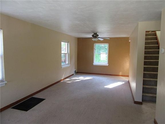 Adorable clean cape cod home features eat in kitchen with ceramic tile flooring, refrigerator, dishwasher and stove. Living room, dining room carpeted, but has hardwood under carpet. First floor bedroom with hardwood under carpeting, full bath all on main floor. Two separate bedrooms on second level. Basement for storage and one car garage, concrete driveway. Covered front porch and new concrete patio out of rear with yard. Nice views sitting on your front porch and semi private rear yard.