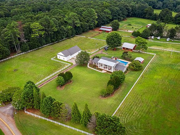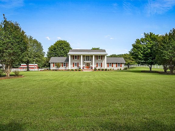Nestled on 5 ACRES in beautiful Seneca, this property offers a perfect blend of EQUINE living and modern convenience. You are welcomed to a long, private driveway with carefully positioned privacy trees overlooking a level, tranquil yard. You will never lack for parking or storage space with a 1 car attached garage and a 70' x 35' detached garage with RV height garage door, 2 double car garage doors, and a single car garage door. The garage offers built-in workbenches, fans, and ample outlets - truly a must see to fully appreciate. The real magic of this property extends beyond its walls. From the quintessential rocking chair front porch to the salt water POOL to large classic red horse BARN, these are just some of the sought after features that add to this homes appeal. The 36' x 36' horse barn is plumbed and offers THREE 12' x 12' stables each with a door to a large fenced-in pasture and opposite side of the barn is large door leading to a second fenced-in pasture for grazing. The front has double barn doors with a covered patio, perfect for a relaxing evening in your private backyard with sunset views. The back of the home has a fenced-in, large 10' deep saltwater pool with diving board and stamped concrete pool deck. From the pool is a covered back deck extending the back of the home with new glass French doors leading the owner's bedroom and living room and 2 more glass single doors allowing natural light to pour in with beautiful views on the back of the home. This 4 bedroom, 2 full bathroom, 2 half bathroom home offers all comfortable living spaces with hardwood floors and NEW carpet in all bedrooms. You are welcomed to a 2 story foyer with a flex room/office to the right with 2 story ceilings leading to a large family room with brick, wood burning fireplace. The family room opens to a breakfast area and modern kitchen with new appliances and granite countertops. From the kitchen is a formal dining room and large laundry room with half bathroom, perfect for people taking a break from the pool, and another half bathroom in the foyer. The owner's bedroom is conveniently located on the main level with walk-in closet, and a full bathroom with jetted tub and separate shower. Heading up the hardwood staircase are 3 more bedrooms, hallway bathroom, and French doors opening to a balcony with the most peaceful view of the large, private front yard. This home is quality built with newer Hardie Board siding and offers a Generac generator powered by propane, French drain system around the house, new vapor barrier in the crawlspace, and well maintained HVAC system with 2 heat pumps. LOCATION, LOCATION, LOCATION!!! You will have the country living you desire without sacrificing the convenience of town. This home is 6 minutes to Oconee Memorial Hospital and all major shopping on Sandifer Blvd./Hwy 123, 11 minutes to local dining and shopping in downtown Seneca, and 8 minutes to a public boat landing on gorgeous LAKE KEOWEE. Be sure to click the links for the 2 minute VIDEO TOUR of the property AND the 360 TOUR of each room.