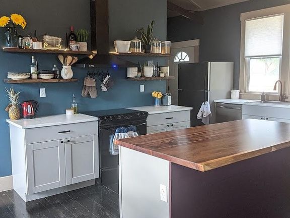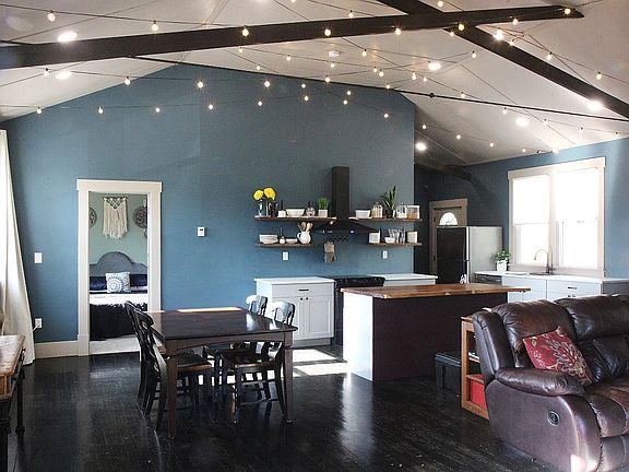 Escape the hustle and bustle of urban life, and soak up the quiet of country living! This two-story home used to be a church in the fifties, and has been fully converted into a sleek, stylish family home. The main level boasts 12 ft vaulted ceilings, an open concept great room with ample space for living and dining. The country style kitchen includes glasstop electric stove, convection oven, single basin sink with garbage disposal, dishwasher, and fridge with ice maker. There is also a cozy office with a window and a door tucked into the corner. The master suite has a big window, vaulted ceilings, large walk-in closet and a full bathroom with tub/shower combo. Windows on the east, west and south sides of the main level flood the space with light. Downstairs you'll find three more bedrooms, each carpeted and featuring a full egress window. There's also a cozy family room with new carpet, and a full bathroom. The laundry room is also on this level, in the utility space with workbench, HVAC and second fridge. Outside you'll find a third of an acre, with parking space for at least four cars, several mature trees, and a fully fenced yard ready for gardening. There's plenty of space for chickens or even a few goats too! A large swing set and tree house round out the backyard. The local elementary, middle and high schools are two doors down, and grocery stores are just a ten minute drive in nearby Elizabeth. 12 Month lease. Security deposit is one month's rent, due up front. Pets (dogs and cats) allowed, there is a $100/mth additional pet fee. Tenants responsible for lawn care and shoveling in the winter.